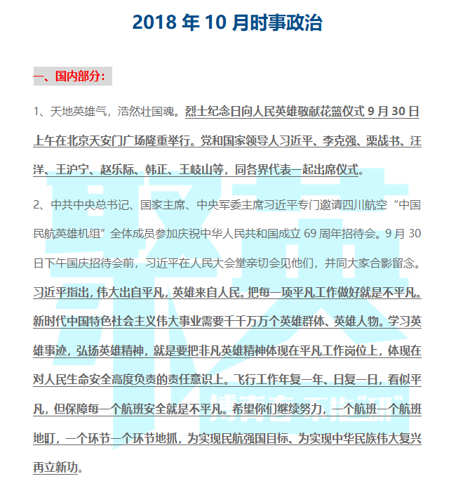考研政治成功的秘诀之一就是:及时关注国内外的时政热点新闻,时政热点作为考研的必考点,内容多而庞杂,为了节省小伙们的政治备考时间,聚英聚创考研信息网小编总结了10月份的时政热点新闻,并在文章末尾有完整版附件可下载