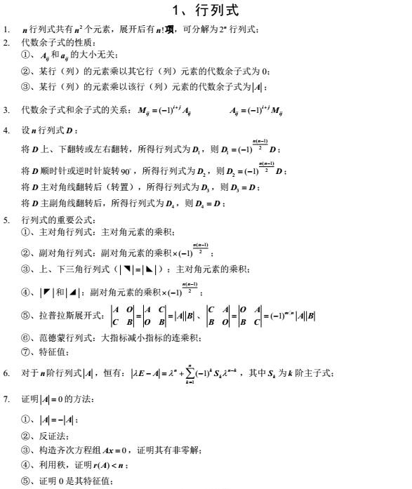 下面就是聚创考研信息网小编为大家整理的考研数学公式之【线性代数】行列式。