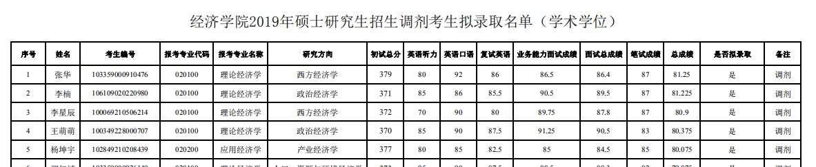 附件:经济学院2019年硕士研究生招生调剂考生拟录取名单(学术学位)