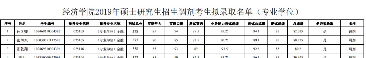 附件:经济学院2019年硕士研究生招生调剂考生拟录取名单(专业学位)