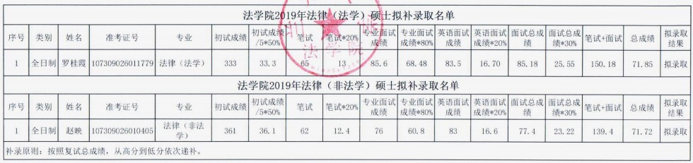 附件:法学院2019年法律硕士拟录取名单(第二轮调剂)